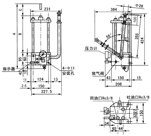 5、泵上回油指示器的作用是操作者通過觀察指示器活塞指示桿的運(yùn)動行程,就可知道潤滑系統(tǒng)的供油狀況。使用時(shí),先計(jì)算好各潤滑部位所需的給油量,配置分配器,并把主分配器上多設(shè)的一個(gè)出油口與手動潤滑泵的回油口接通,使?jié)櫥祷氐街甘酒髦,如返回的油量累?jì)達(dá)到3.28mL,則指示器的活塞指示桿全部伸出,表示各潤滑點(diǎn)已根據(jù)需要完成一個(gè)周期的給油,應(yīng)停止供油并把回油指示器的指示桿推進(jìn)。 |