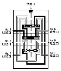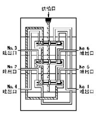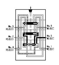 | 7、流入的潤(rùn)滑劑推動(dòng)活塞A 向右運(yùn)動(dòng)、右腔的潤(rùn)滑劑壓向NO.6吐出口,經(jīng)外部配管送向潤(rùn)滑點(diǎn)。當(dāng)活塞A移動(dòng)到至右極限時(shí)返回到初始1狀態(tài),繼續(xù)重復(fù)上述動(dòng)作。 |
