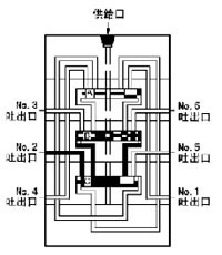 | 4、流入的潤(rùn)滑劑推動(dòng)活塞A向左移動(dòng)、左腔的潤(rùn)滑劑壓向NO.3吐出口經(jīng)外部配管送向潤(rùn)滑點(diǎn)。當(dāng)活塞A運(yùn)動(dòng)至左極限時(shí)活塞C右腔開(kāi)始進(jìn)入潤(rùn)滑劑。 |