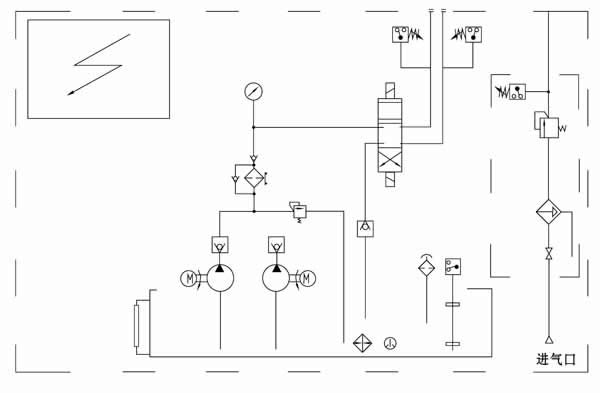 3、 油箱油位低時應(yīng)及時從空氣濾清器的過濾網(wǎng)處加入同牌號的潤滑油,油位到達(dá)低油位時電氣連鎖油泵不能啟動,嚴(yán)禁人工在無油或低位以下時啟動油泵工作。